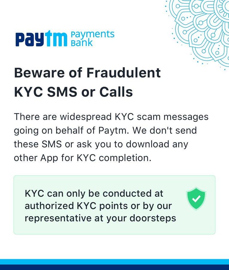 Complete your KYC with Aadhaar at a KYC Point near you - Paytm Bank Visit a KYC point near you to complete your KYC for FREE. You will need to provide your Aadhaar* & PAN** for KYC verification. Want to complete KYC without Aadhaar? Click here. **In case you do not have PAN, our authorized representative will assist you in providing a Form-60 declaration as per RBI guidelines.