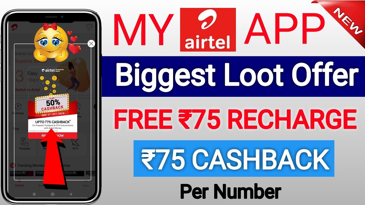 Airtel 1 year Recharge Plans & Offers - Pricebaba 2 days ago · You can get cashback up to 100% by using Promo Code - LUCKY200 for your phone recharge. Use promo code FIRST and get ₹30 cashback on Airtel mobile recharge using the Paytm app. Get Rs.30 to Rs.300 Cashback; Get Assured Rs.10 to Rs.100 Cashback on your 1st, 2nd, and 3rd Mobile Recharge or Bill Payment of Rs.48 or more on Paytm