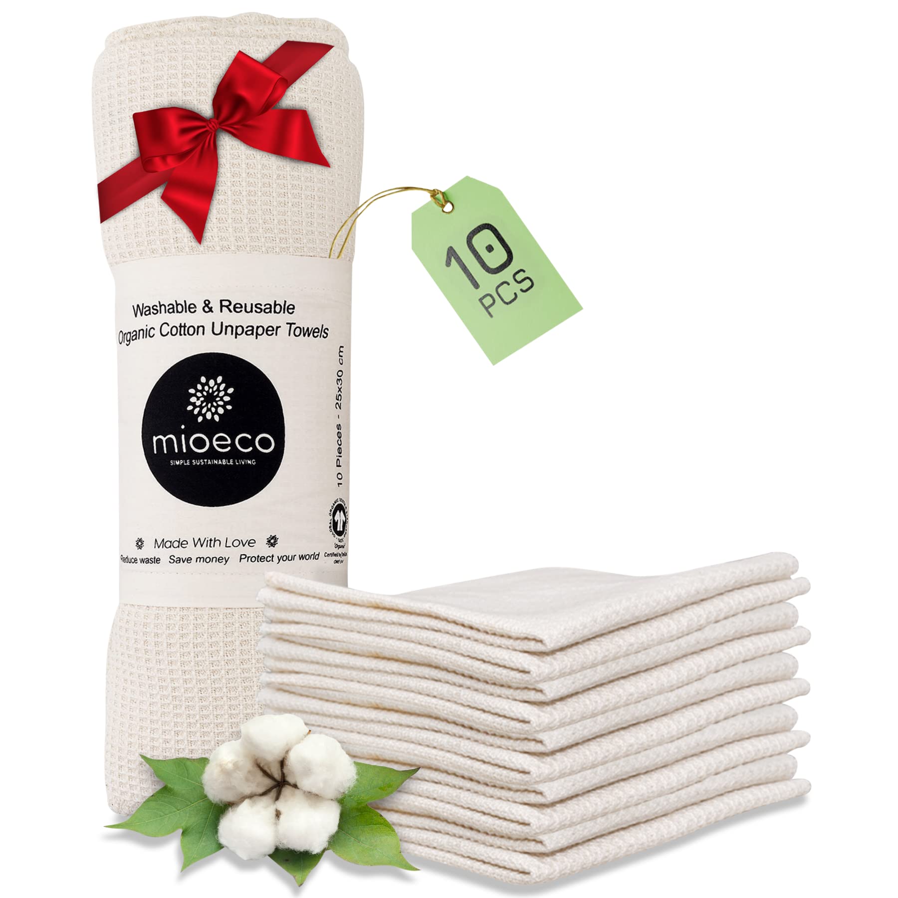 MioEco 10 Pack Reusable Paper Towels Washable - Nature Friendly Paper Towels - Organic Cotton Bamboo Alternative - Thick, Strong, Paperless Kitchen ...